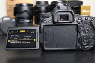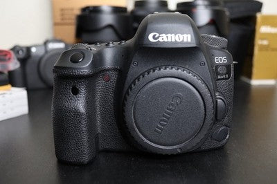 This is for a Canon 6D mark II DSLR camera body, original manual, 3 OEM batteries, a camera strap and the body cap. Camera is in EXCELLENT condition and has been fully tested. All features are working exactly as they should. LCD display screen is clean. Some scratches on lens mount chrome.