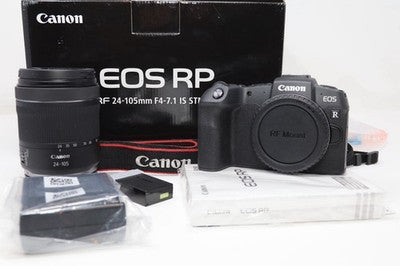 This is for a Canon RP camera with a 24-105mm RF f4-7.1 IS STM lens, 2 original batteries, sealed manual, box camera strap and charger. The camera is in MINT condition / new in an open box and is as-if new. Everything has been fully tested - video recording, autofocus, touch screen, flash etc. Lens is MINT condition: no fungus, no haze, no scratches.