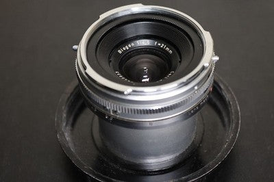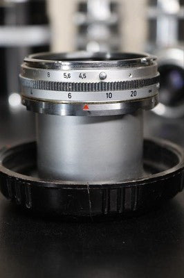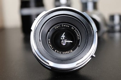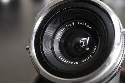 This is for a Carl Zeiss Biogon 21mm f4.5 lens for Contarex cameras. The serial number is 3448833. The glass has some light internal haze on one of the front elements. No fungus. No significant scratches. Some light internal dust. The lens body is EXCELLENT.