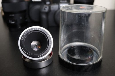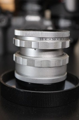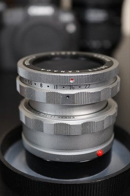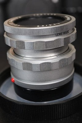 This is for a Leica OTZFO 1646K focusing adapter with a 65mm F3.5 Elmar lens by Leitz Canada with its original enclosure case and lens cap. Serial number: 1721434