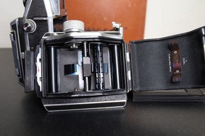 The camera has some wear and dust on the leather. The leather needs a cleaning. The bellows are decent on this body. The rangefinder mechanism and machine coupling focus cam works exactly as they should. Everything snaps into place as you would expect from this style of box camera. Again, the bellows are good - no light leaks in bellows. Camera overall is in OK condition. Fully functional and all functionality + all lenses work as they should. No fungus, no haze, no significant scratches on glass. Shutter speeds seem to be accurate. The apertures on each of the lenses are great and smoothly transitions between each f stop. The shutter speed dials on each lens firmly stay in place when switching. Shutter cocking and release levers have been tested on each lens and are working as expected.