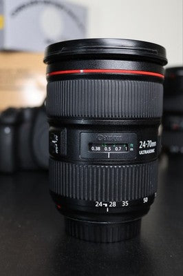 This is for a Canon 24-70mm 2.8 ii L USM lens with its EW-88C lens hood, a 82mm Ultimax UV filter and both lens caps. The glass is absolutely gorgeous on this lens. No haze, no fungus, no significant scratches. Focus wheel is smooth, and zoom stays in place like it should. Some light internal dust. Weather seals and gripping are perfect