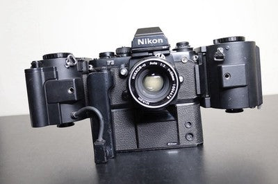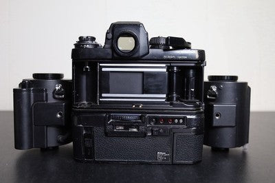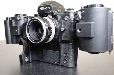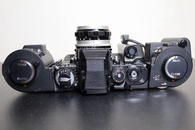 This is for a Nikon F3 with an HP meter, a MF-4 250 bulk film loader (no film canisters included), a MD-4, and a 50mm f2 AI lens. See video attached of MF-4 shutter working. All camera features working exactly as they should, including auto mode. MD-4 motor drive winder works correctly. The camera body has some scuffs on the edges, but is in OK condition. Lens glass is excellent!