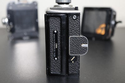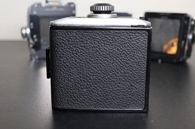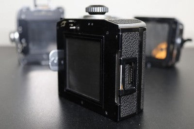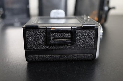 This is for a Rollei SL66 120 film back with the film slide protector and magazine insert. It is in excellent condition, some scuffs and gripping wear near the wheel.
